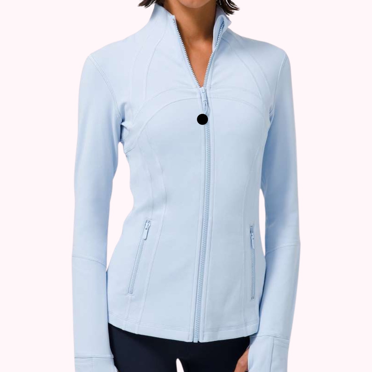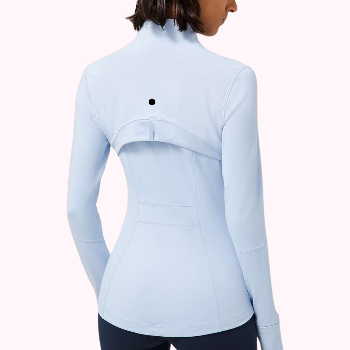The full-length Light Blue Define Jacket is designed to flatter your silhouette and move with you. This piece features contour seam detailing, and a smooth, stretchy finish that hugs in all the right places.